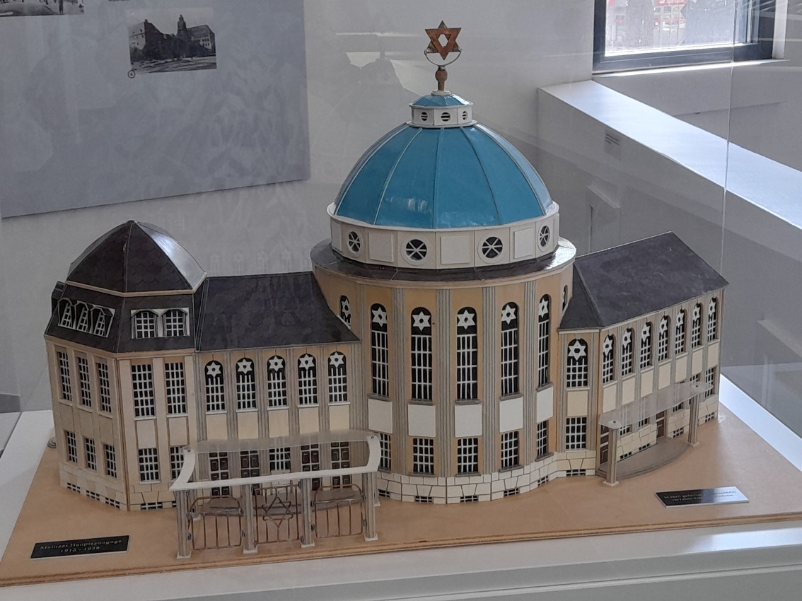 15.08.2025 | Fahrt nach Mainz. In Juli 2021 hat das Welterbekommitee die Schum-Stätten in Speyer, Worms und Mainz zum Unesco-Welterbe ernannt. Bereits 2018 hat der Verein Stolpersteine mit Interessierten eine Fahrt in das jüdische Worms unternommen. In diesem Jahr fand nun eine Fahrt nach Mainz statt. Auf dem Programm stand ein Besuch der neuen Synagoge in Mainz, die 2010 eingeweiht wurde. Der spektakuläre Bau wurde nach den Plänen des Architekten Manuel Herz erbaut. Eine Führung brachte den Teilnehmenden u.a. die Symbolik und die Gestaltung des Synagogenbaus näher. Hier einige Fotos von der Synagoge (klicken Sie auf ein Thumbnail, um das Bild in Originalgröße zu sehen): ![]() ![]() ![]() ![]() ![]() ![]() ![]() ![]() ![]() ![]() ![]() ![]() Ein weiterer Programmpunkt war der Besuch der Chagallfenster in der Kirche St. Stephan. Marc Chagall war bereits 91 Jahre alt, als er die beiden ersten Fenster für St. Stephan entwarf. Diese beiden Fenster wurden 1979 eingeweiht. Insgesamt wurden bis 1985 neun Fenster von Chagall geschaffen. Die letzten Fenster wurden kurz nach Chagalls Tod eingeweiht. Auch in der Kirche St. Stephan fand eine Führung statt. |